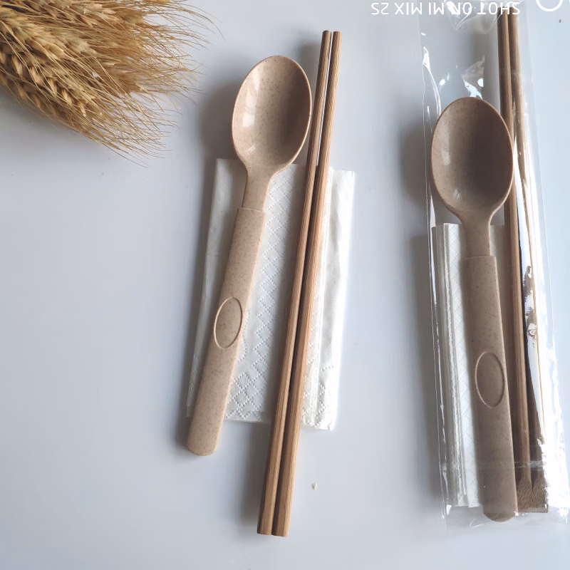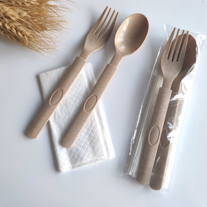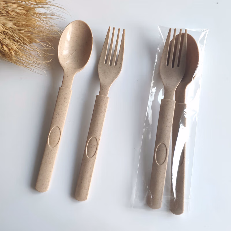 小麦秸秆餐具可降解刀叉勺套装50套